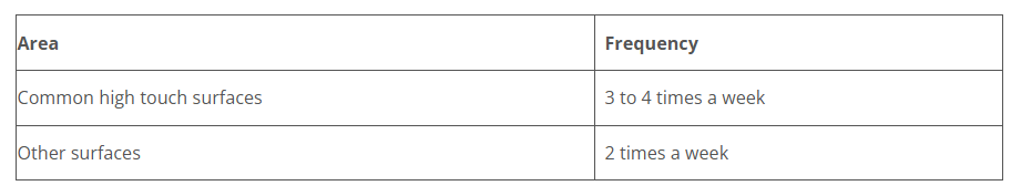 As a general rule of thumb, here are the recommended cleaning and disinfection frequencies for homeowners: