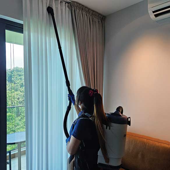 We usually clean within 3 meters in height in view of workplace safety. We also do clean above 3 metres of height with the appropriate space and equipment at a fee. Do speak to our consultant to find out more!