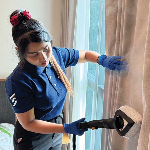 Curtains steam cleaning is an on-site cleaning method that employs an atomised steam that uses tiny steam vapour molecules to clean and eliminates harmful pollutants, contaminants and mould spores on the curtains. For a deeper clean, we can pair up encapsulation cleaning and extraction to provide a deep clean on-site.