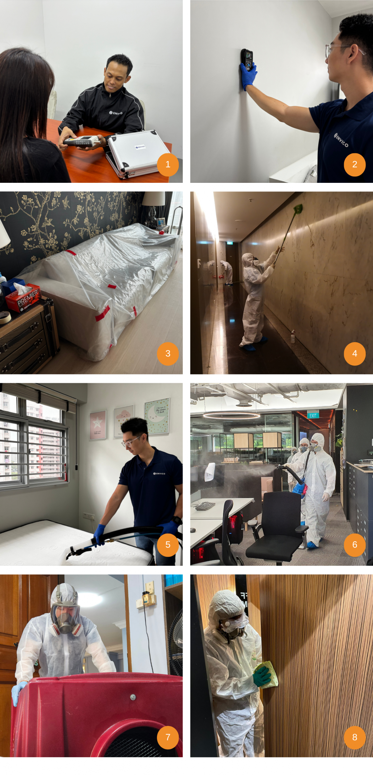 After the mould treatment processes, our consultant will provide recommendations based on the findings to prevent mould growth. We also offer an option to pair our Anti-microbial treatment, which helps prevent and reduce the chances of cross-contamination within your property.
