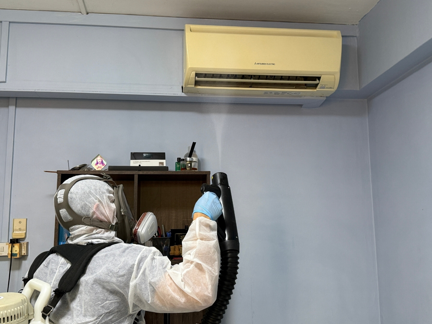 As the treatment has been completed, the remaining stains may have set into the walls / partitions. You may wish to engage painters to paint fungistatic paint over them. However, to ensure that the mould does not come back again, please carry out the after care program which we have arranged for you.