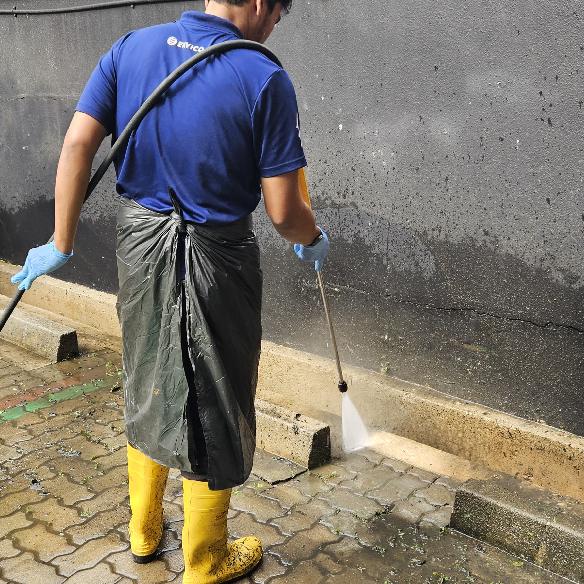 At Envico, pressure jet washing is carried out by a skilled cleaning team that is trained in the safe operation of the machine. They apply the appropriate chemical based on the type of grime and perform safety checks around the parameter before starting the cleaning service.