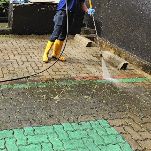 At Envico, pressure jet washing is carried out by a skilled cleaning team that is trained in the safe operation of the machine. They apply the appropriate chemical based on the type of grime and perform safety checks around the parameter before starting the cleaning service.
